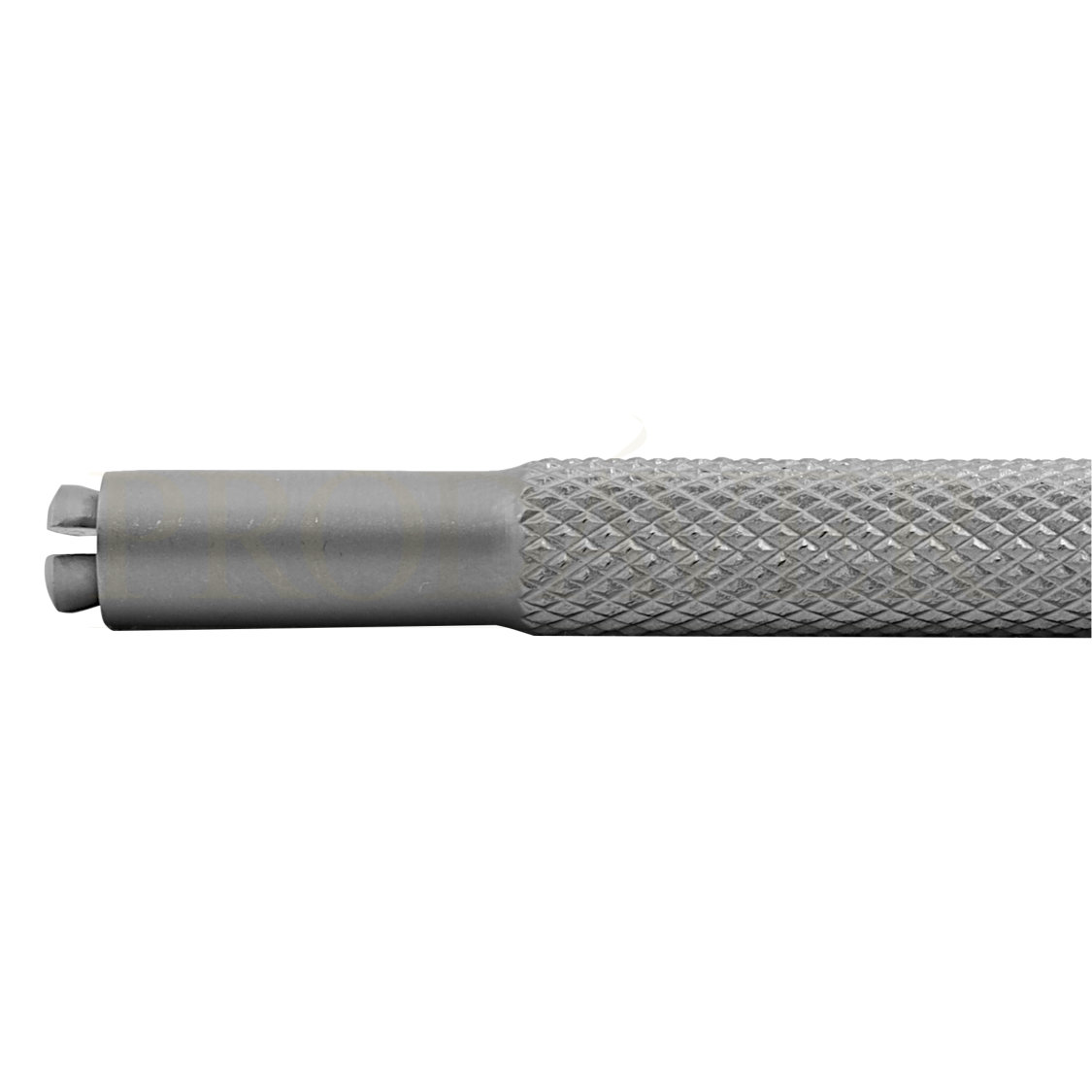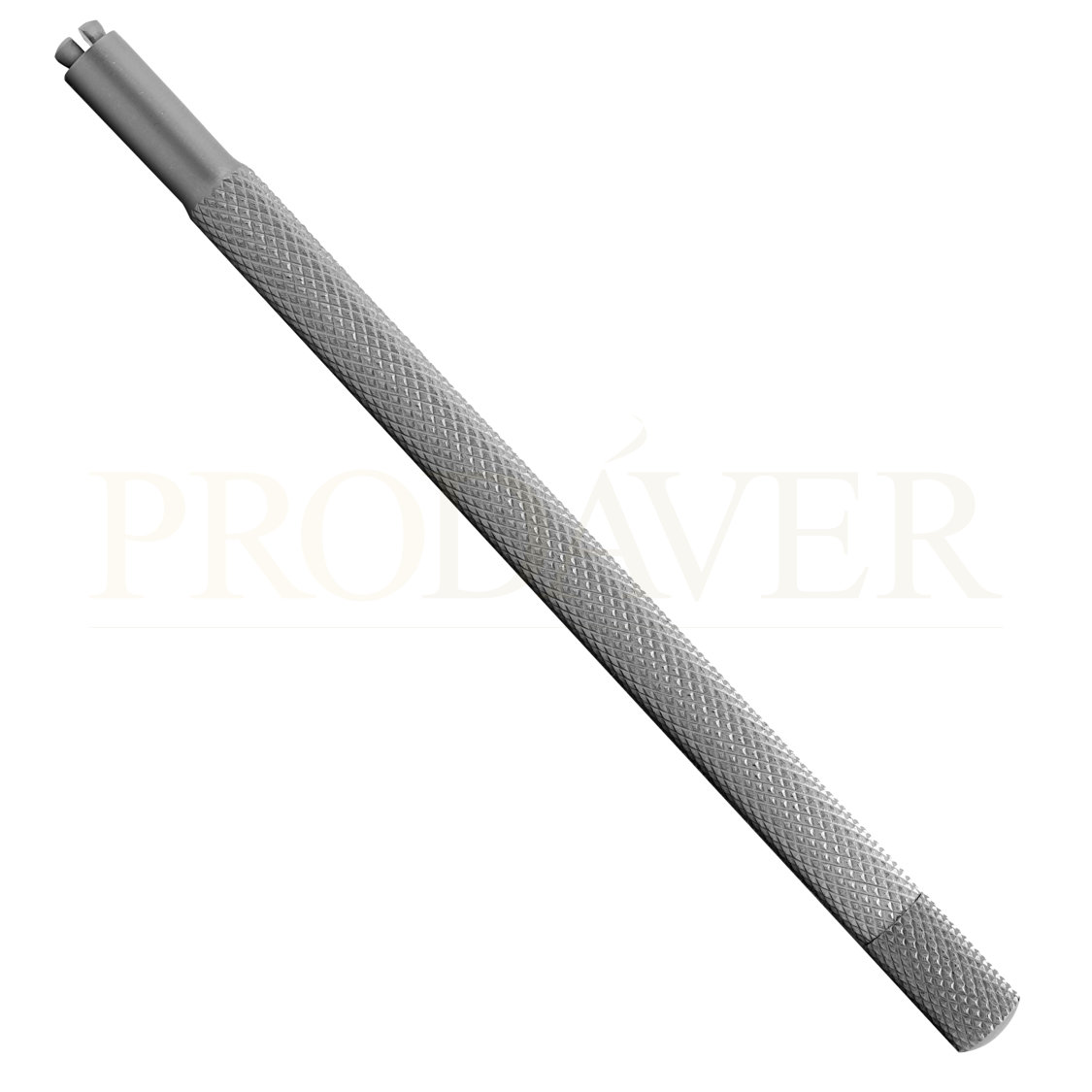 Cabo em inox com encaixe para lâminas de bisturi de bico nº62 S e nº90. Colocar a lâmina na ponta - entre as pegas - e na outra extremidade do cabo, rodar a ponta para a direita até as pegas apertarem a lâmina. Prodáver